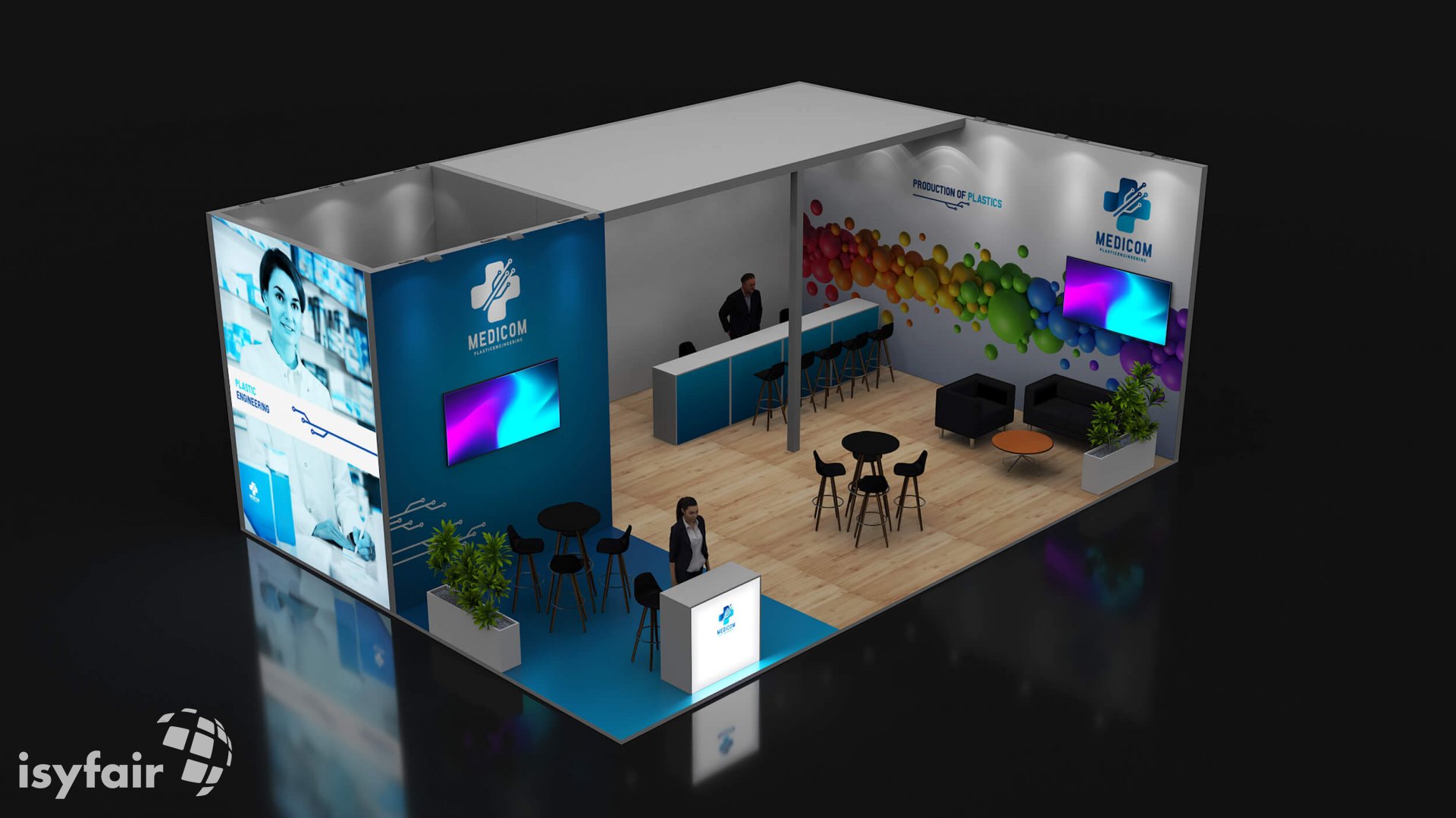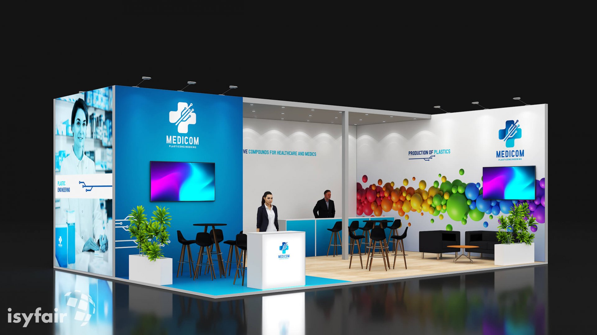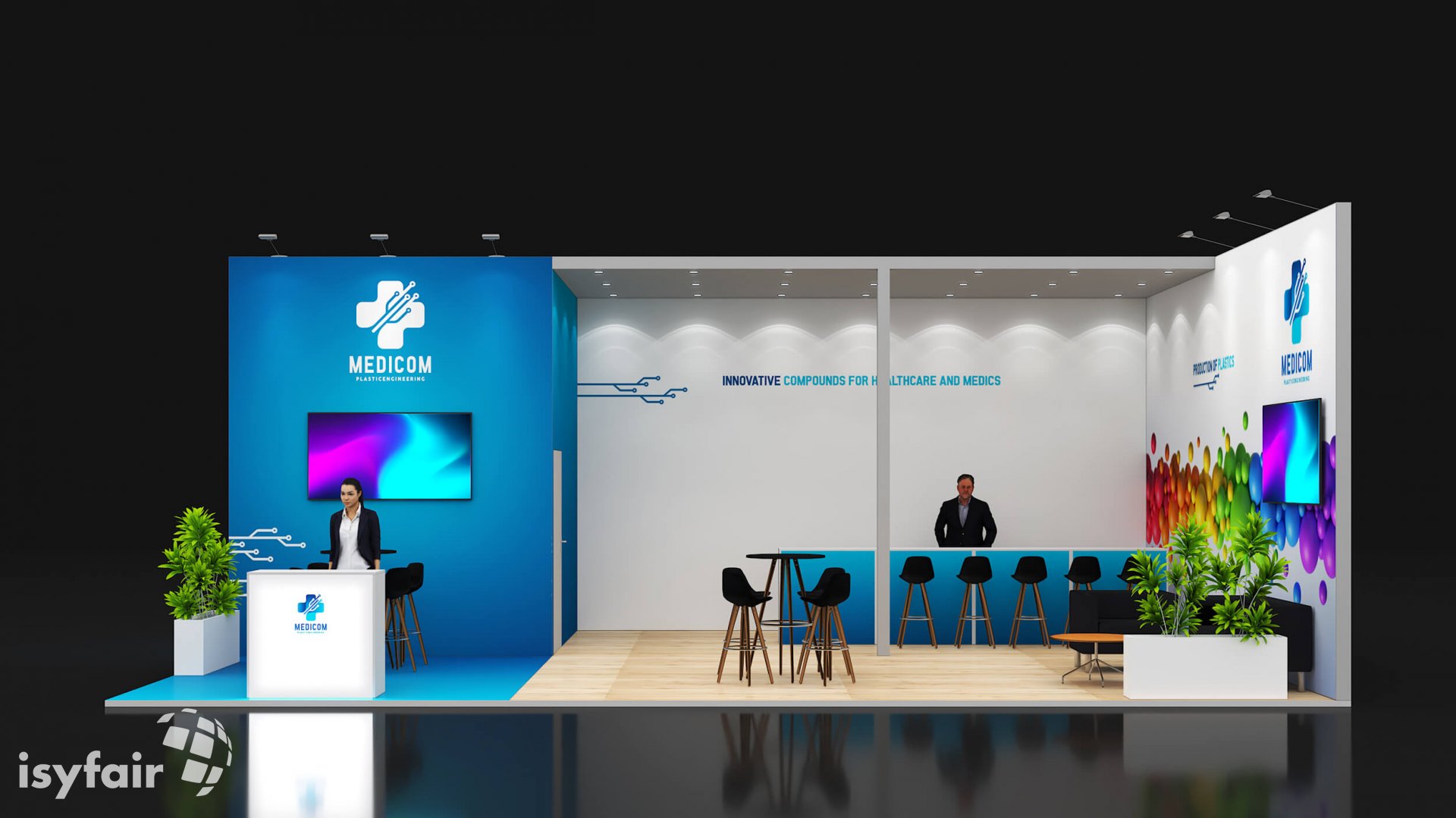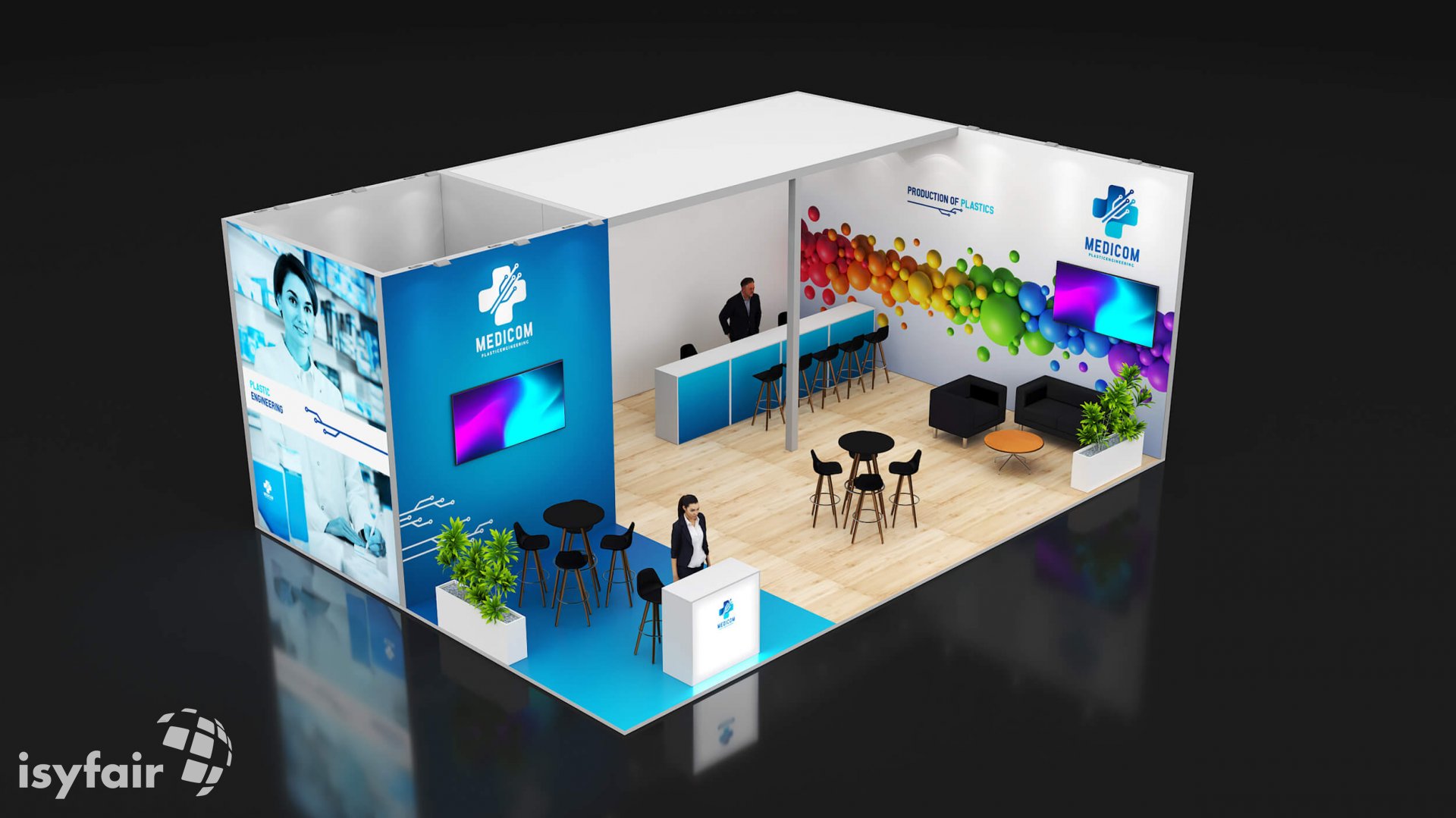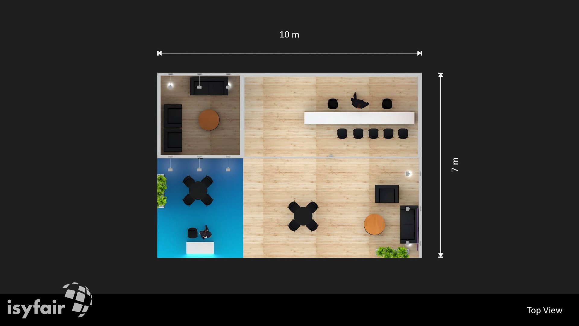 Dit design kan natuurlijk helemaal worden aangepast naar jouw wensen en eisen. Laat ons weten wat je plannen zijn en welke eisen je stelt aan jouw stand, dan maakt ons design-team een concept op maat voor je. Stuur ons een mail op info@ISYFAIR.com of bel ons op (+31) (0) 6 22690489.