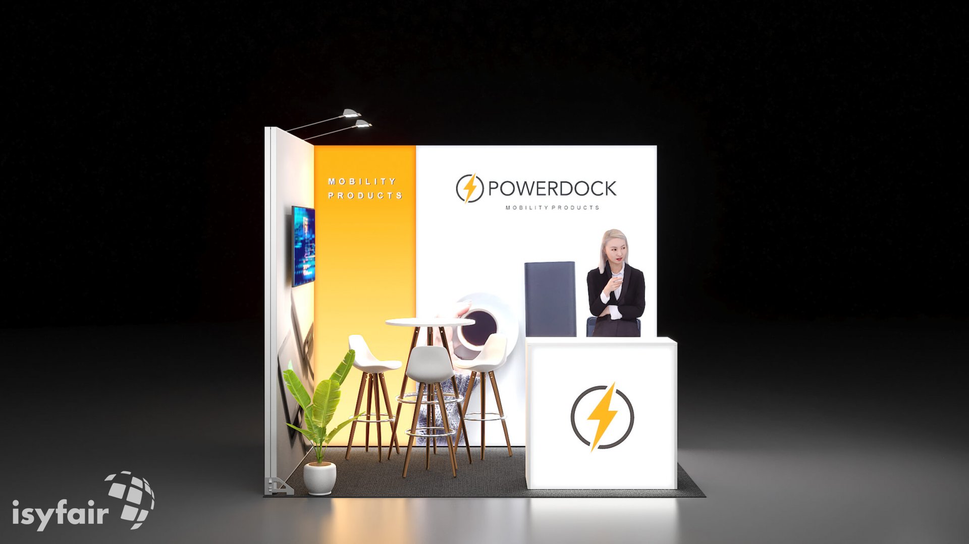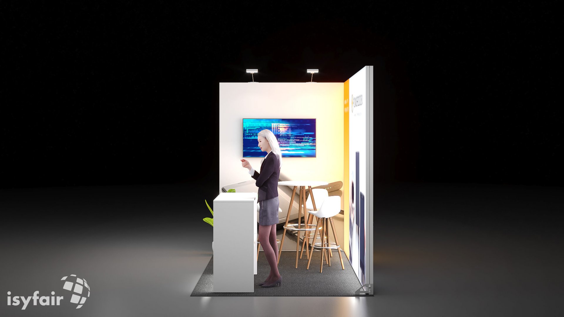 Dit design kan natuurlijk helemaal worden aangepast naar jouw wensen en eisen. Laat ons weten wat je plannen zijn en welke eisen je stelt aan jouw stand, dan maakt ons design-team een concept op maat voor je. Stuur ons een mail op info@ISYFAIR.com of bel ons op (+31) (0) 6 22690489.
