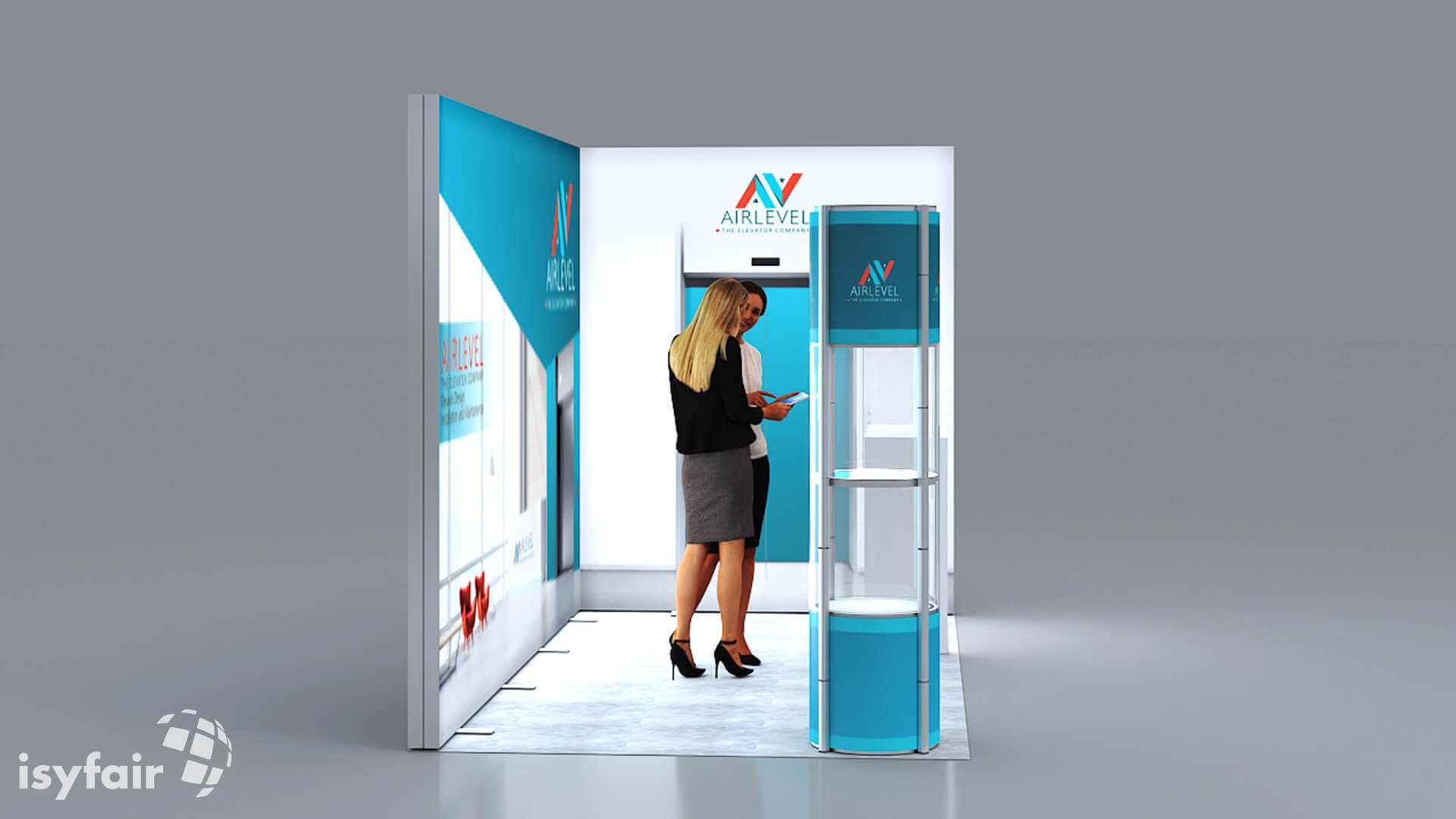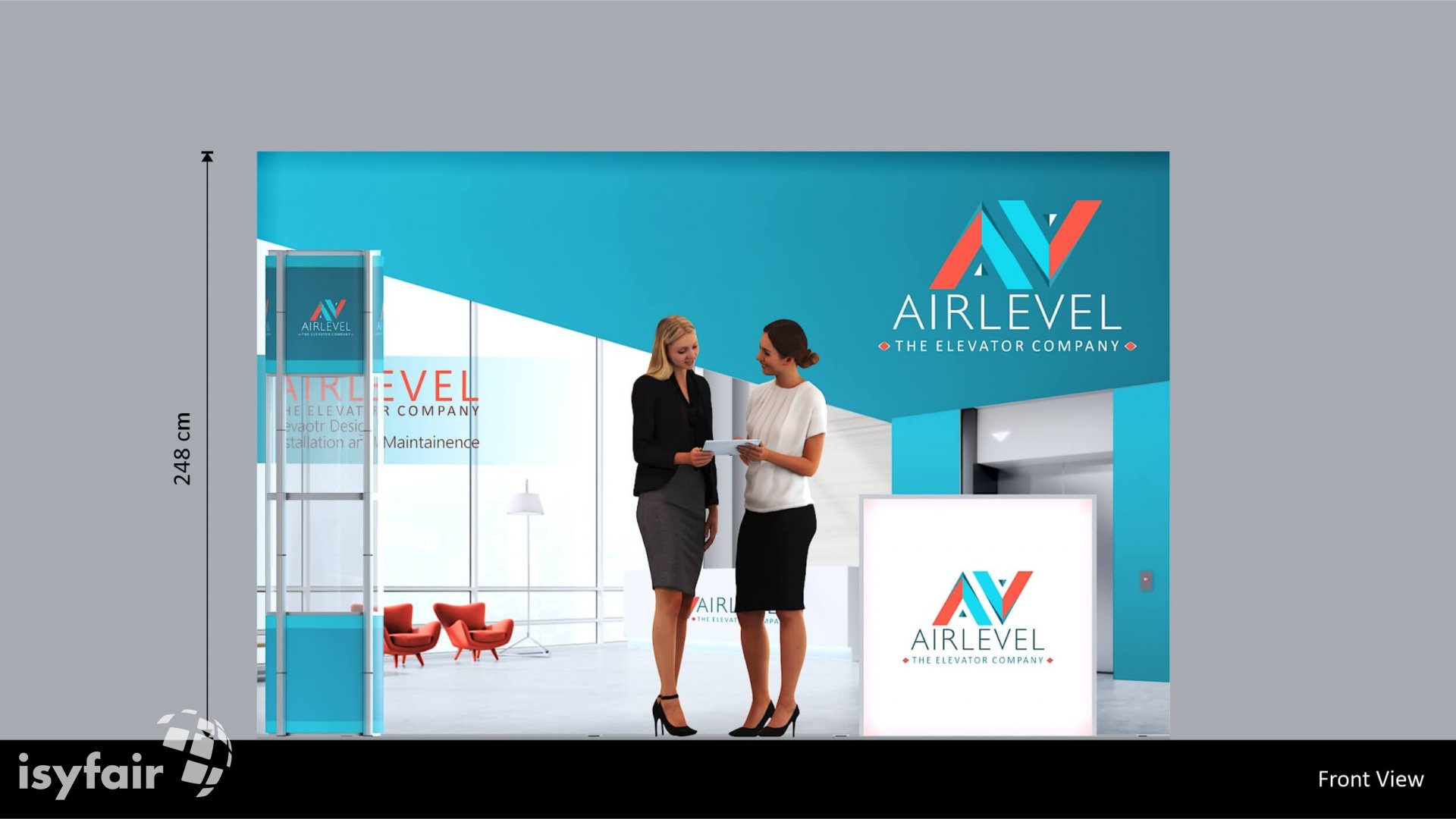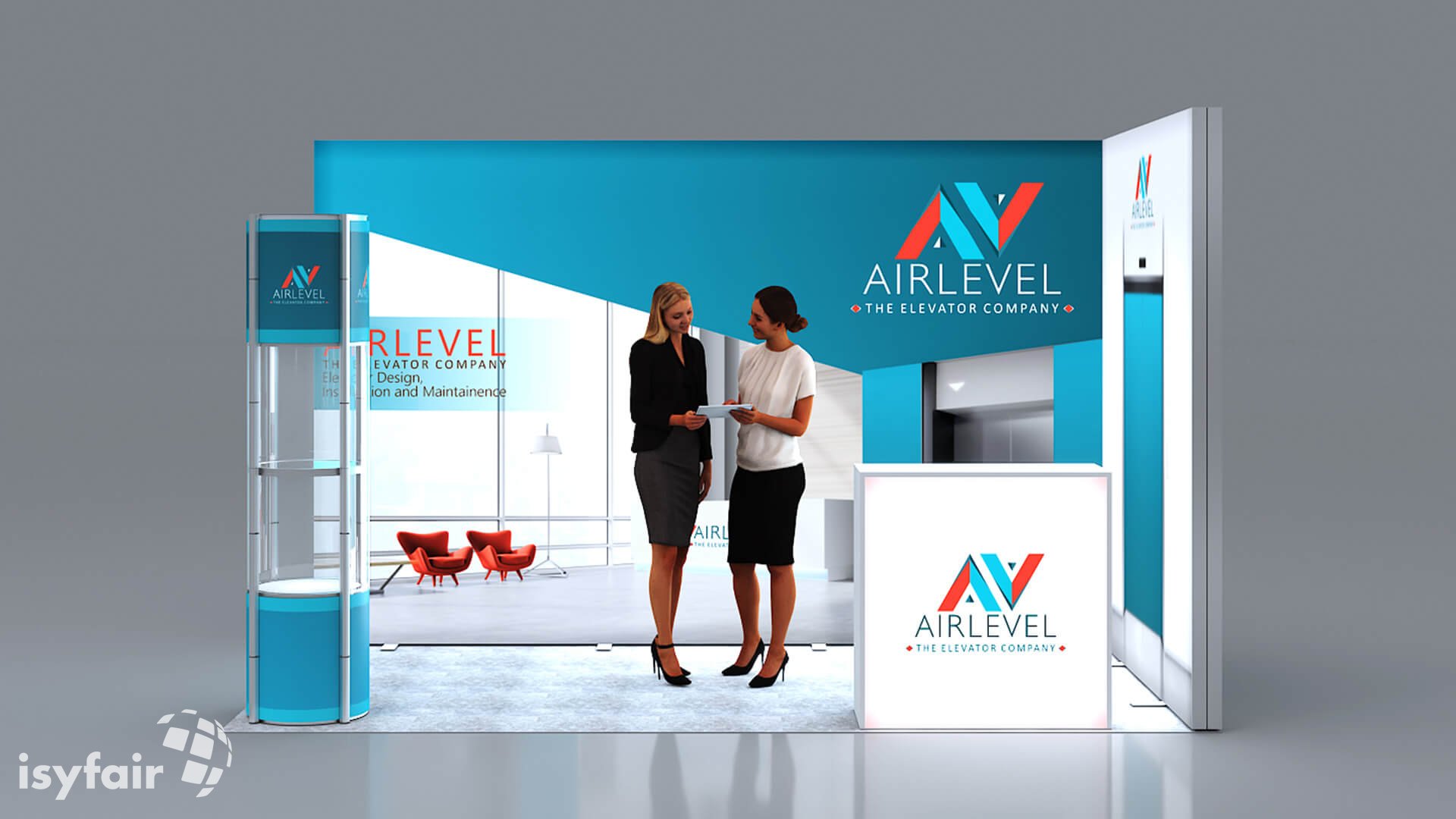 Dit design kan natuurlijk helemaal worden aangepast naar jouw wensen en eisen. Laat ons weten wat je plannen zijn en welke eisen je stelt aan jouw stand, dan maakt ons design-team een concept op maat voor je. Stuur ons een mail op info@ISYFAIR.com of bel ons op (+31) (0) 6 22690489.