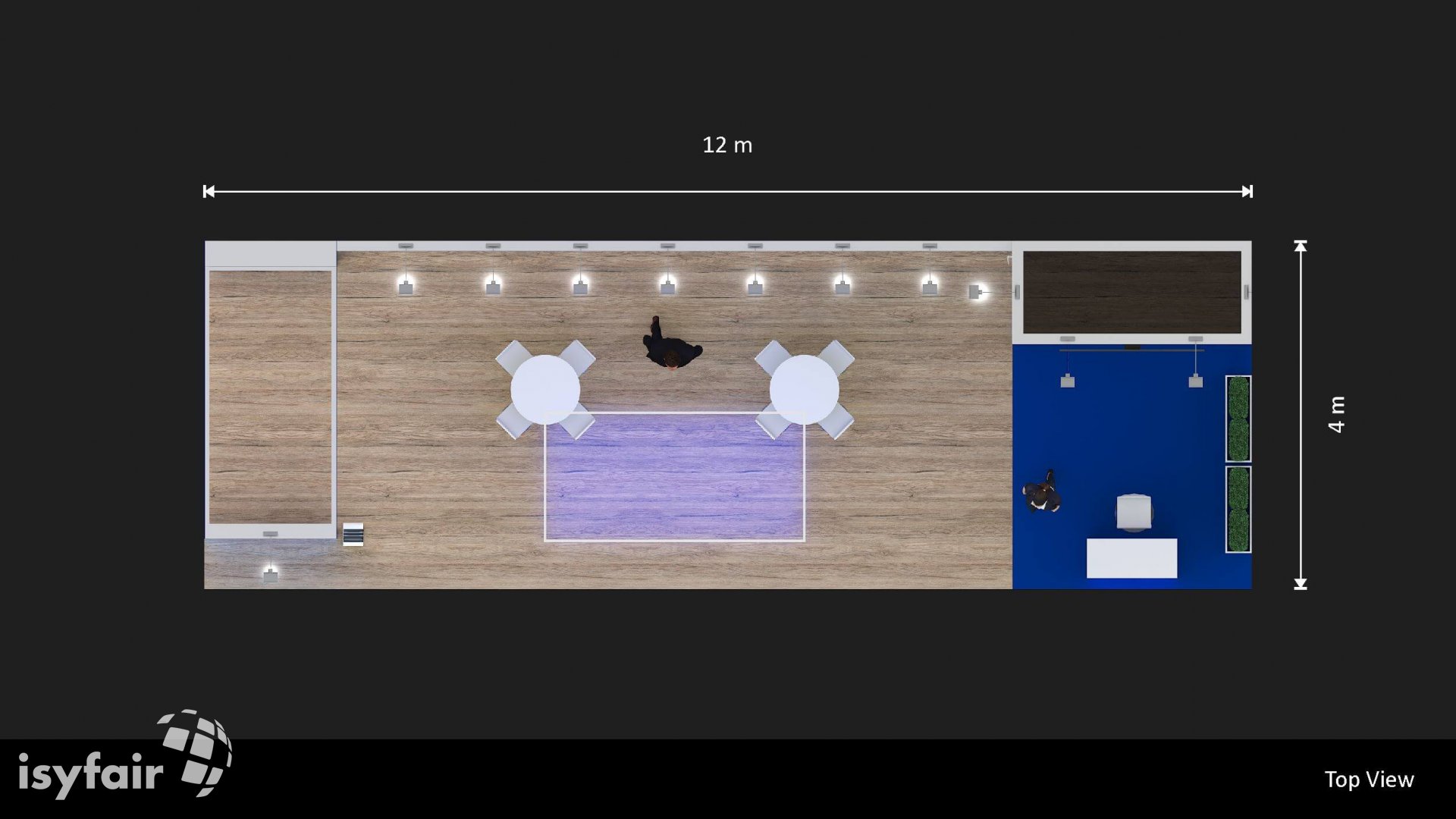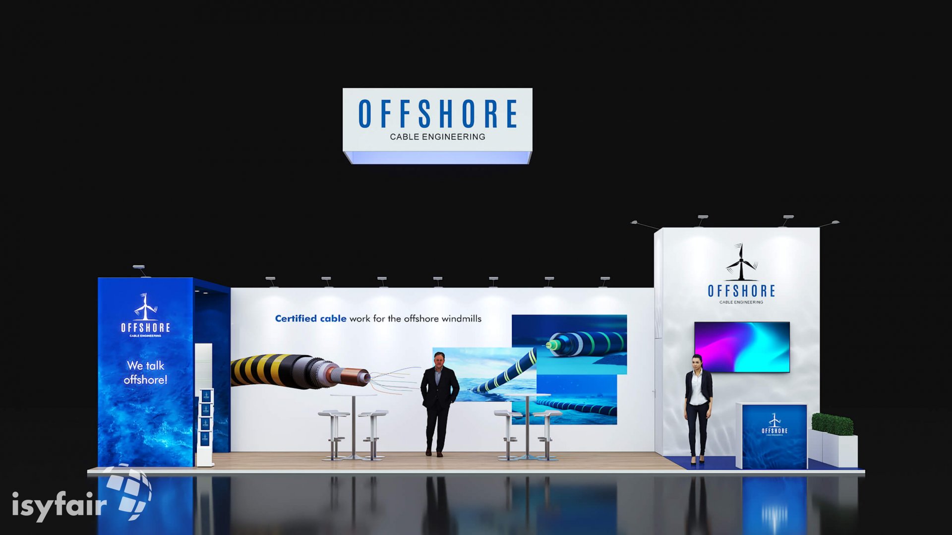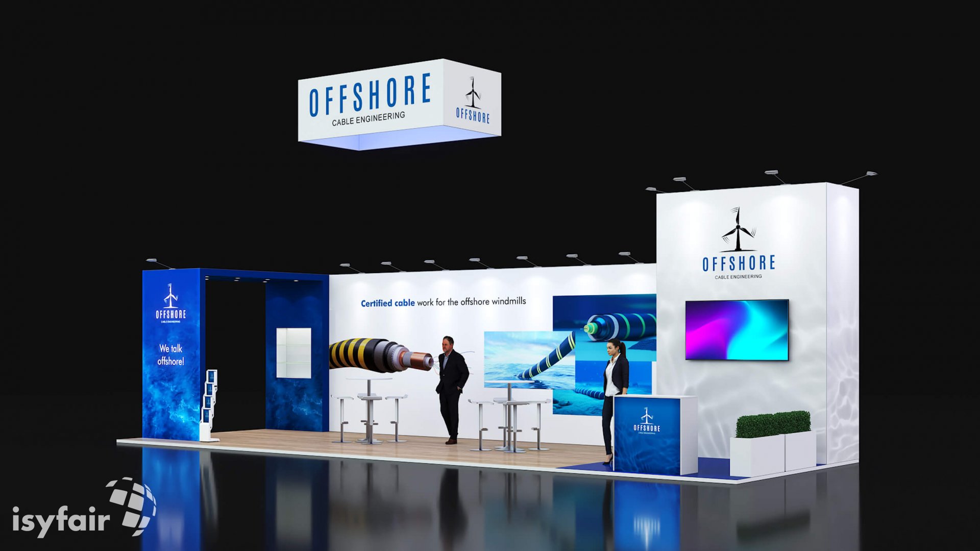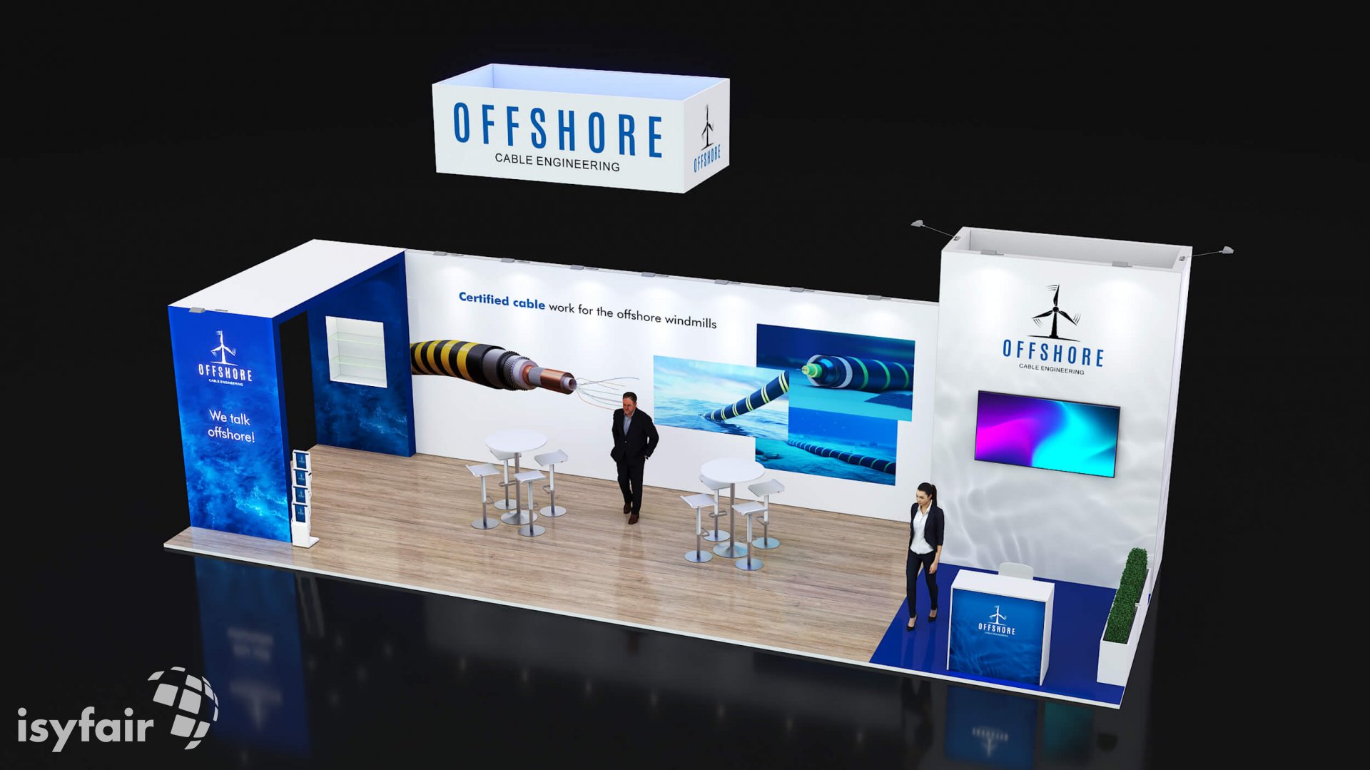 Dit design kan natuurlijk helemaal worden aangepast naar jouw wensen en eisen. Laat ons weten wat je plannen zijn en welke eisen je stelt aan jouw stand, dan maakt ons design-team een concept op maat voor je. Stuur ons een mail op info@ISYFAIR.com of bel ons op (+31) (0) 6 22690489.