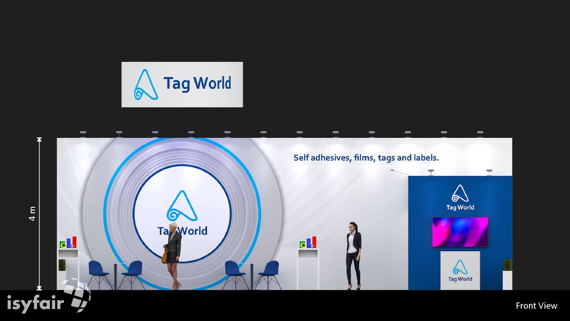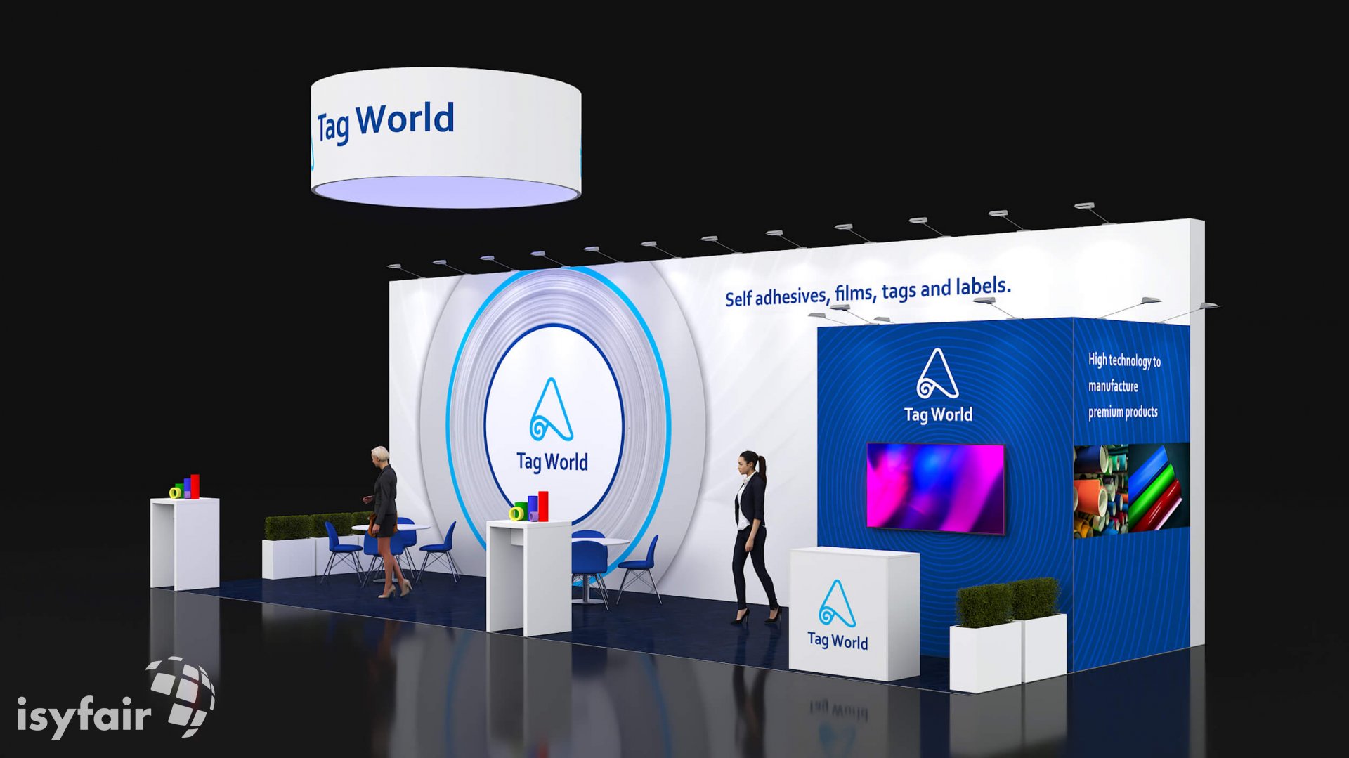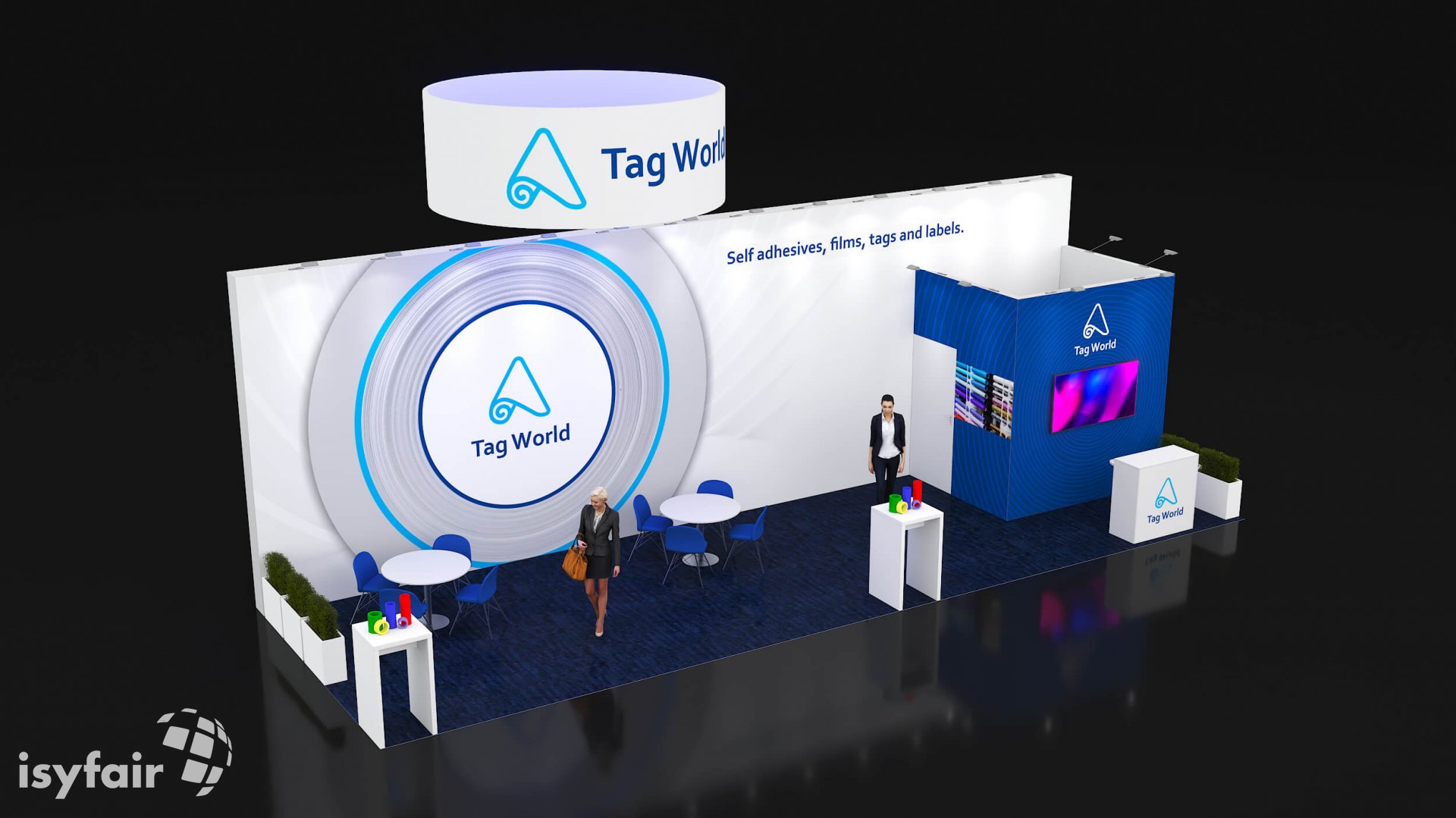 Dit design kan natuurlijk helemaal worden aangepast naar jouw wensen en eisen. Laat ons weten wat je plannen zijn en welke eisen je stelt aan jouw stand, dan maakt ons design-team een concept op maat voor je. Stuur ons een mail op info@ISYFAIR.com of bel ons op (+31) (0) 6 22690489.