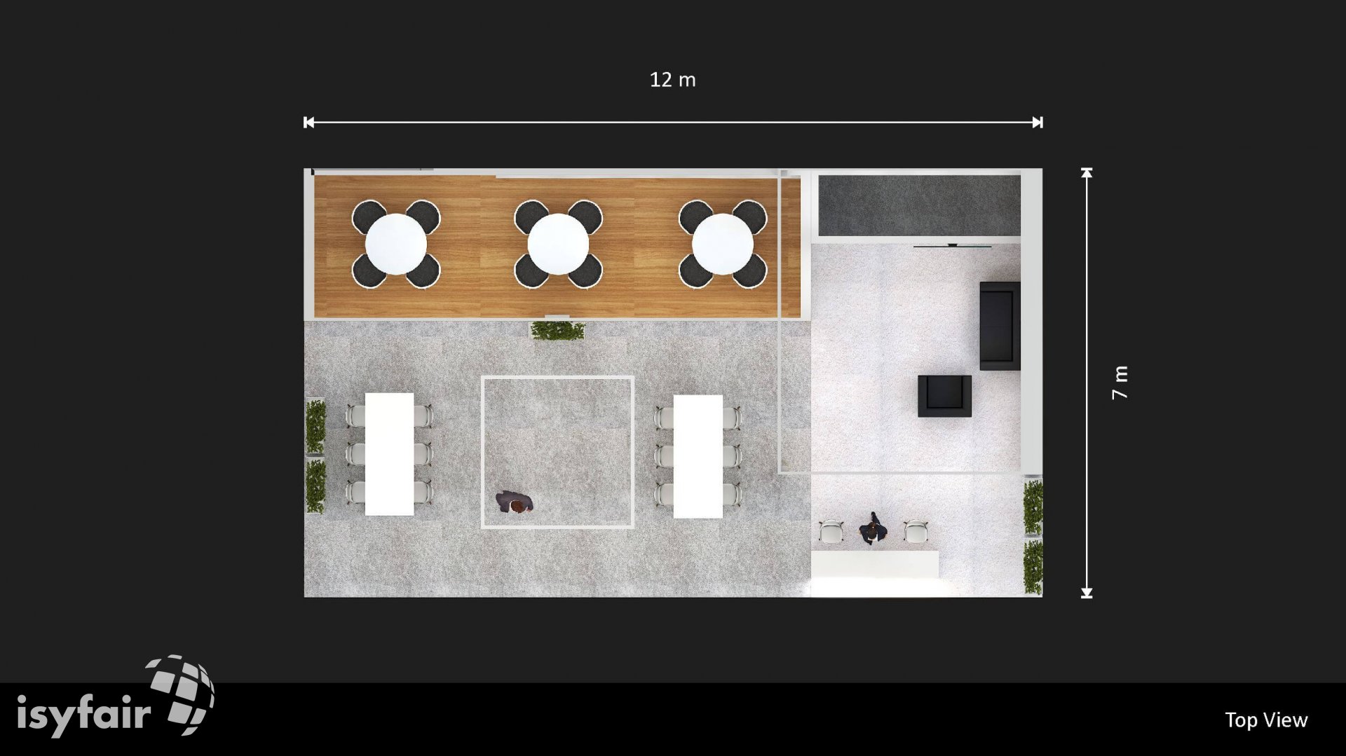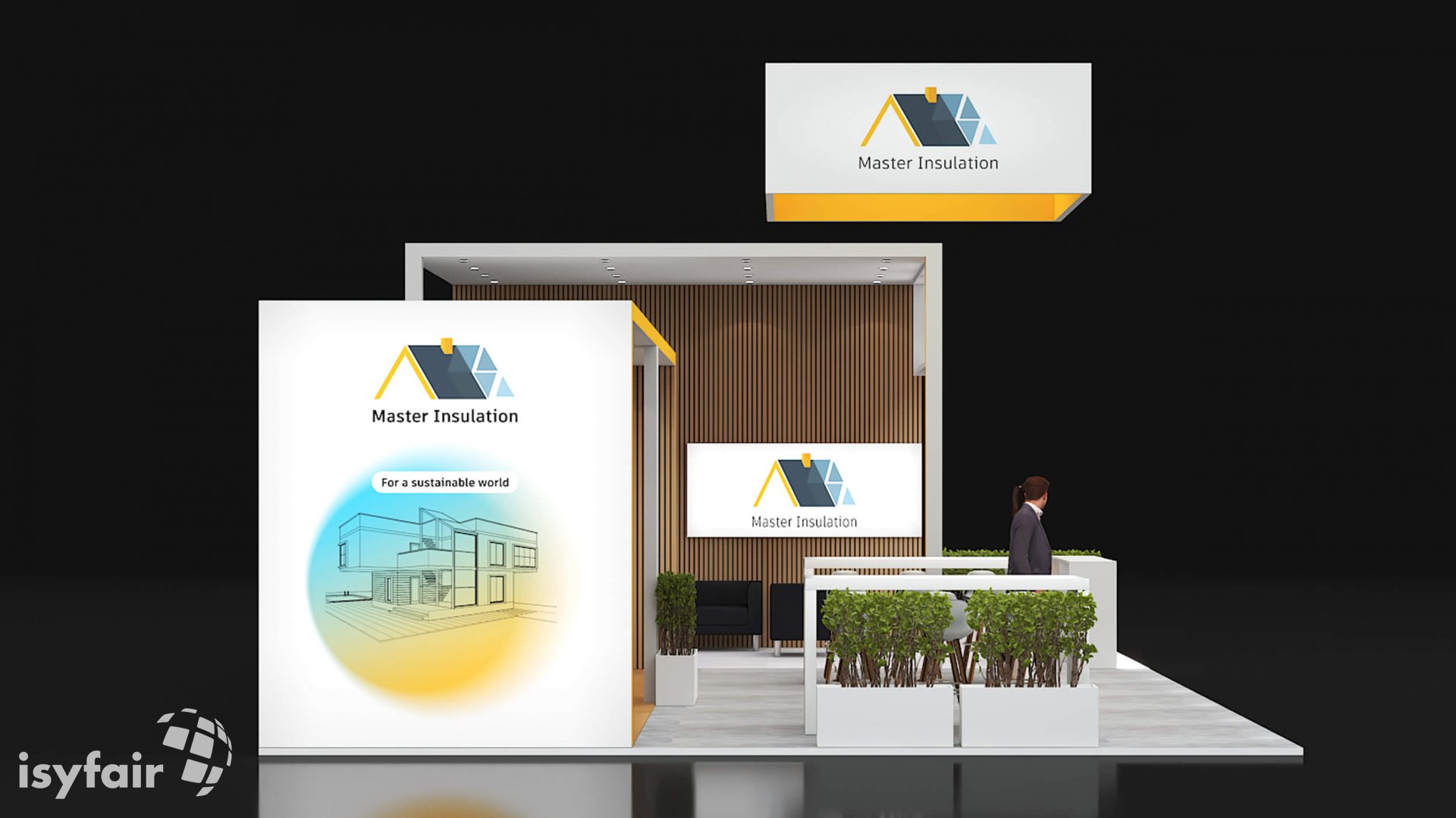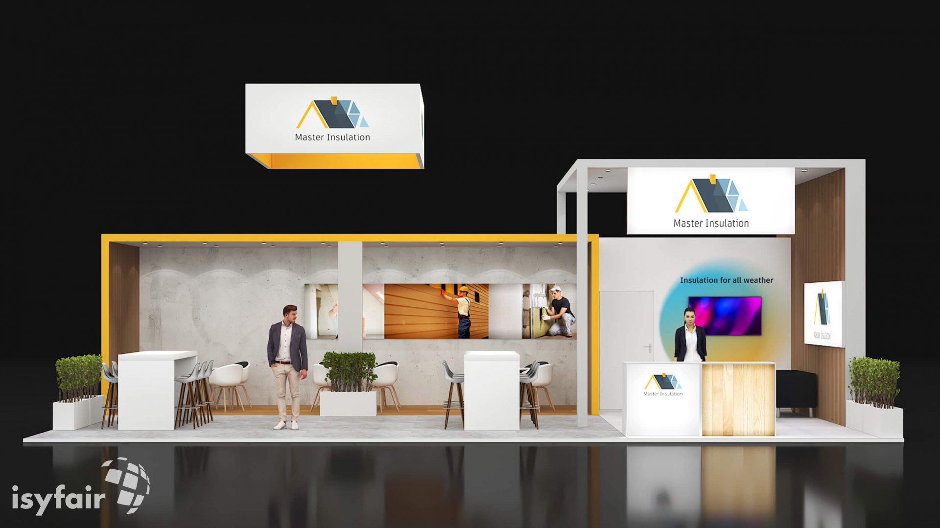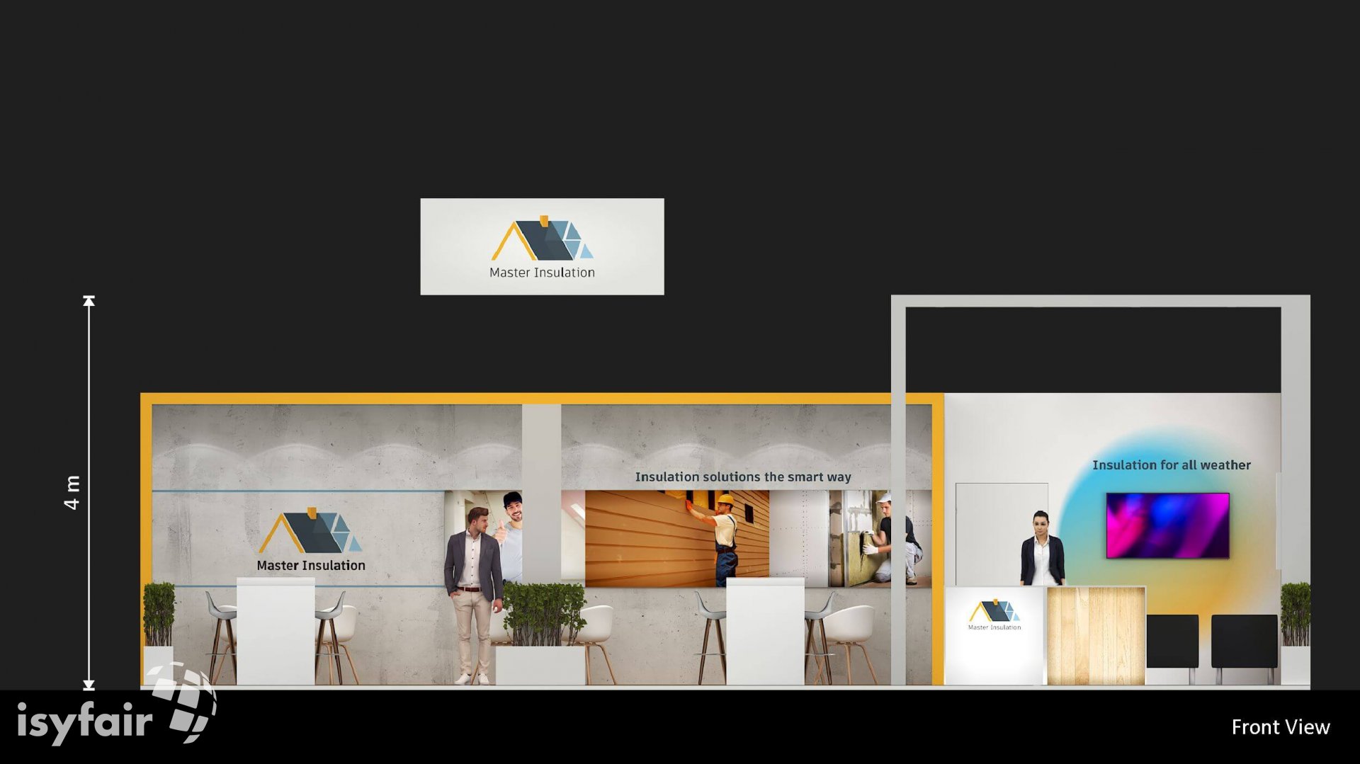 Dit design kan natuurlijk helemaal worden aangepast naar jouw wensen en eisen. Laat ons weten wat je plannen zijn en welke eisen je stelt aan jouw stand, dan maakt ons design-team een concept op maat voor je. Stuur ons een mail op info@ISYFAIR.com of bel ons op (+31) (0) 6 22690489.