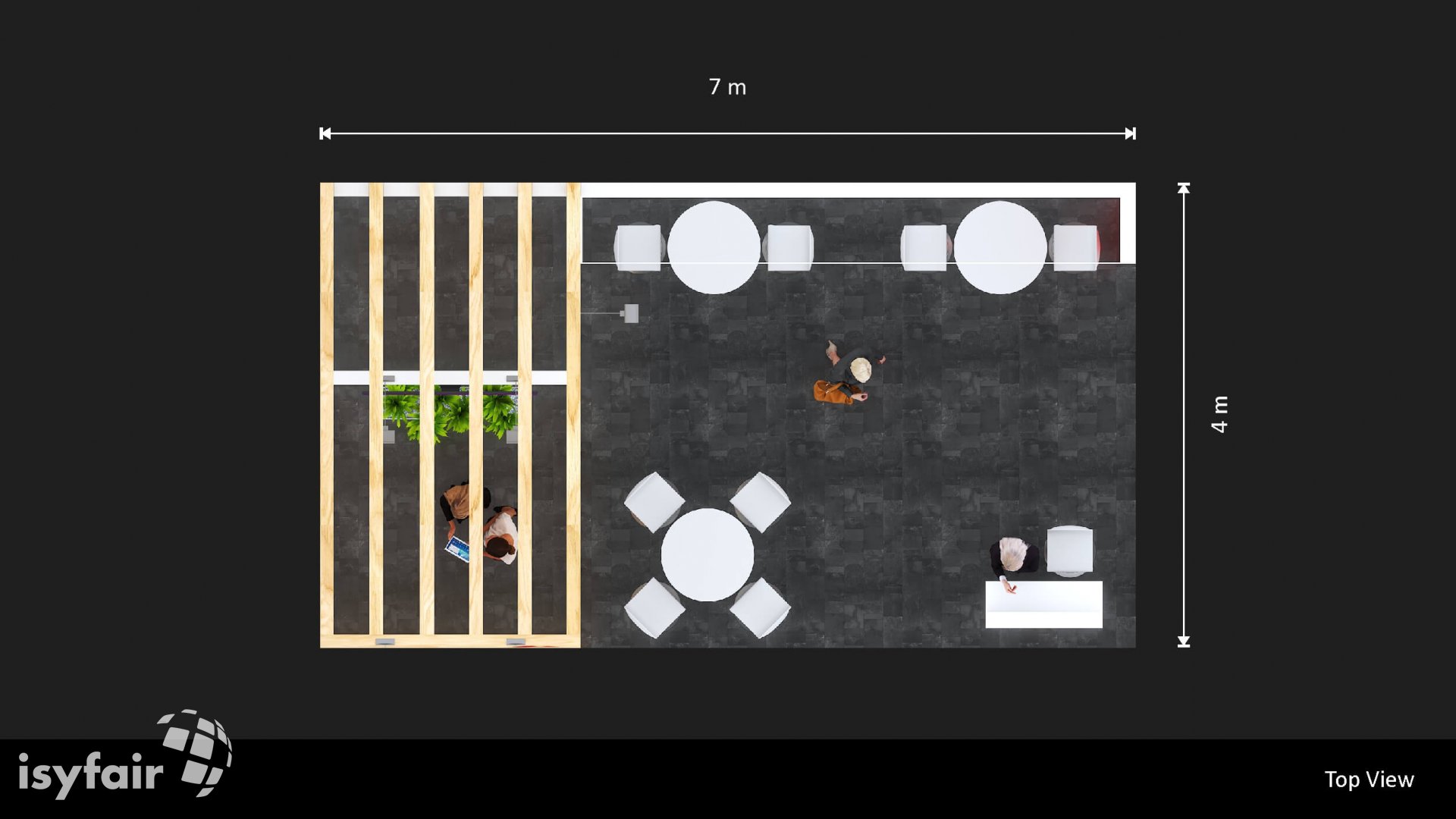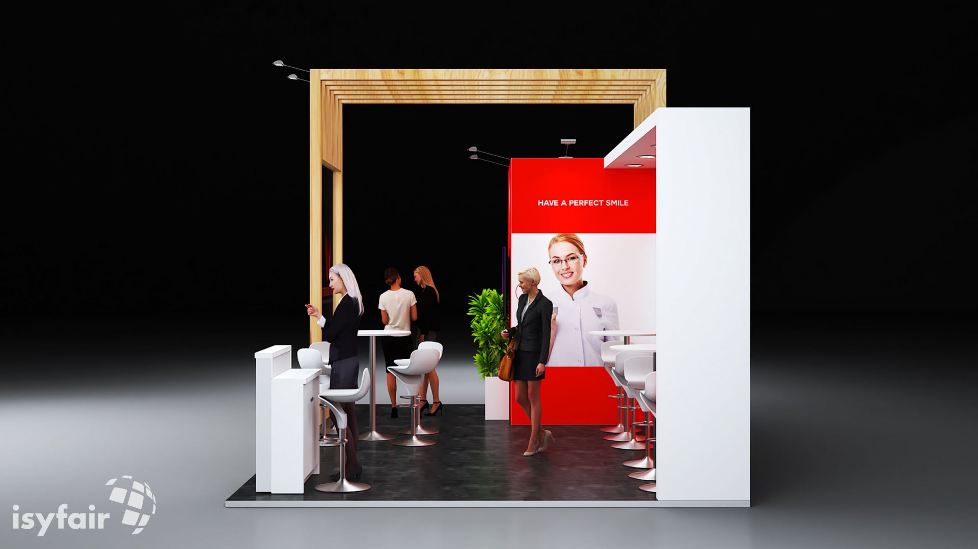 Dit design kan natuurlijk helemaal worden aangepast naar jouw wensen en eisen. Laat ons weten wat je plannen zijn en welke eisen je stelt aan jouw stand, dan maakt ons design-team een concept op maat voor je. Stuur ons een mail op info@ISYFAIR.com of bel ons op (+31) (0) 6 22690489.
